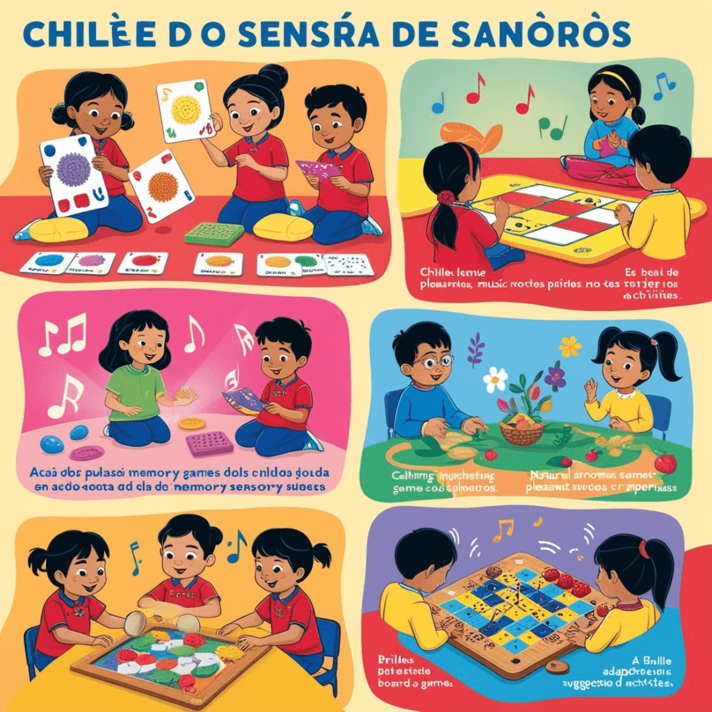 - Juegos de memoria y asociación: Usando tarjetas con imágenes, texturas o sonidos.
