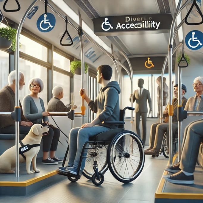 1. Infraestructura accesible: rampas funcionales, ascensores en buen estado, espacios adecuados en buses y trenes.